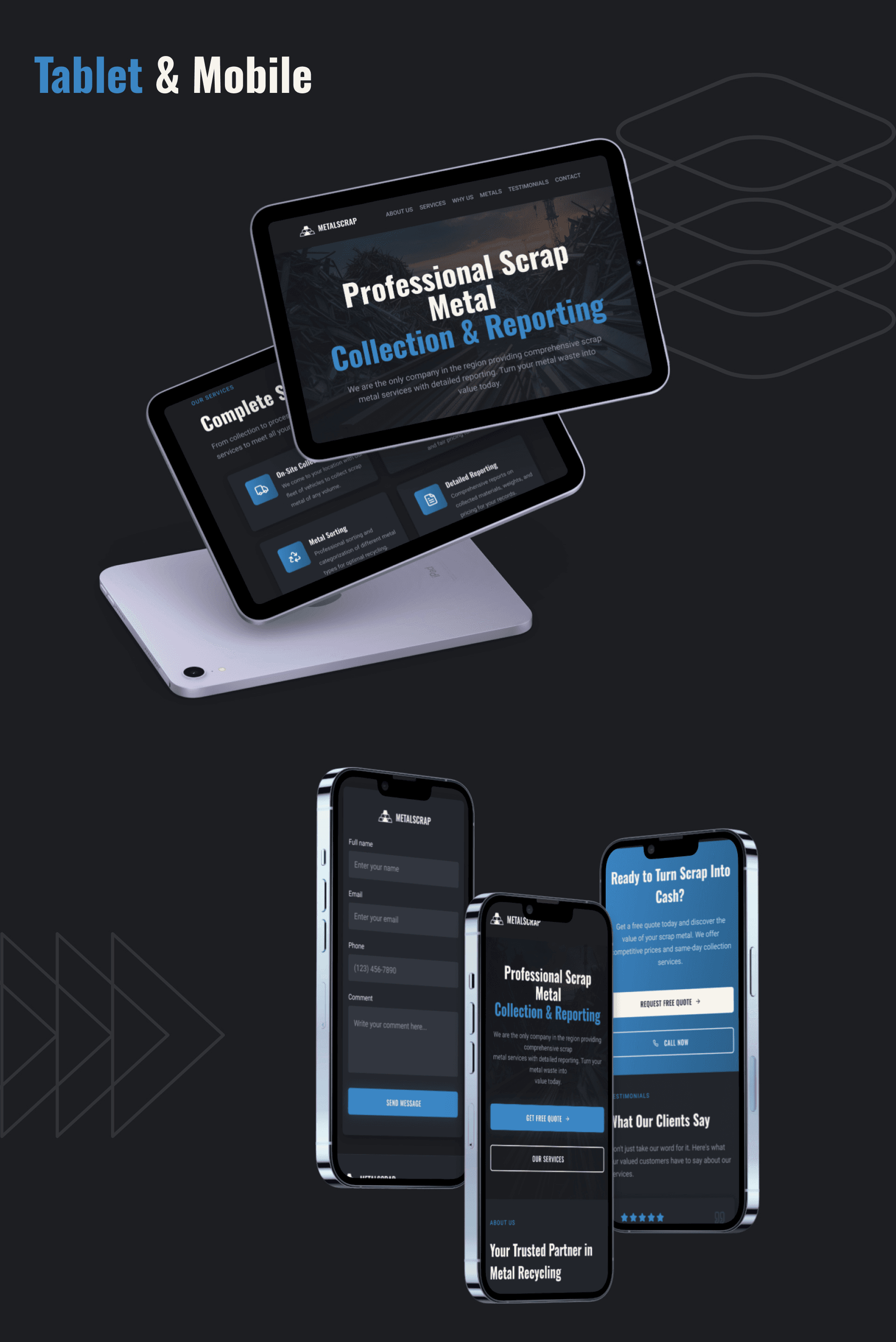 🚀 Result: A professional platform that builds trust with industrial and private clients. The design replaces manual chaos with a clear, automated approach to metal reception.